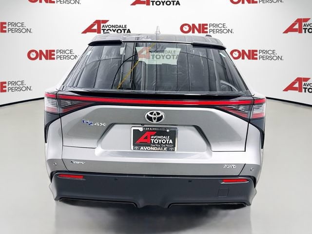 At Avondale Toyota you will only deal with ONE PERSON from drive-up to delivery. No switching from sales person to sales manager to finance manager. You can literally be driving out of our dealership in about an hour after you select your new or used Toyota. Certified. Heavy Metal 2024 Toyota bZ4X XLE AWD Single-Speed Automatic Electric Motor ABS brakes, Alloy wheels, Electronic Stability Control, Front dual zone A/C, Heated door mirrors, Illuminated entry, Low tire pressure warning, Power Liftgate, Remote keyless entry, Traction control.
