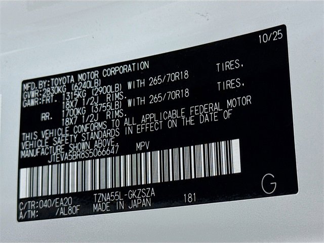 Vin Number: JTEVA5BR8S5066647
