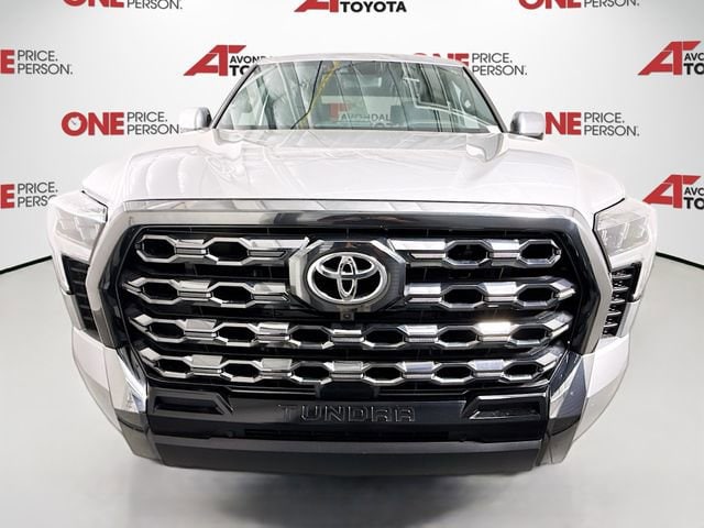 Avondale Toyota makes it easier to buy a car with our One Price, One Person policy. That means every customer who visits our dealership will see the same price for the same car. You'll see the One Price displayed prominently with each vehicle at our dealership. There's no haggling and no tricky negotiations -- just a simple low price every time. You'll also only work with one person through your shopping person. From initial shopping to financing and completing the sale, you'll have the support of a single staff member. Peace of mind comes standard. As part of the Avondale Toyota family, your exceptional ownership experience starts with ToyotaCare*, a no cost maintenance plan with 24-hour roadside assistance. The ToyotaCare plan covers normal factory scheduled maintenance for 2 years or 25,000 miles, whichever comes first. 24-hour roadside assistance is also included for 2 years and unlimited miles. Silver 2025 Toyota Tundra Platinum 4WD 10-Speed Automatic 3.4L V6 Price includes the following rebates and incentives from Toyota Financial Services: $5000 - TMS Customer Cash . Exp. 05/04/2026