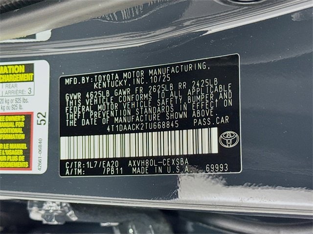 Avondale Toyota makes it easier to buy a car with our One Price, One Person policy. That means every customer who visits our dealership will see the same price for the same car. You'll see the One Price displayed prominently with each vehicle at our dealership. There's no haggling and no tricky negotiations -- just a simple low price every time. You'll also only work with one person through your shopping person. From initial shopping to financing and completing the sale, you'll have the support of a single staff member. Peace of mind comes standard. As part of the Avondale Toyota family, your exceptional ownership experience starts with ToyotaCare*, a no cost maintenance plan with 24-hour roadside assistance. The ToyotaCare plan covers normal factory scheduled maintenance for 2 years or 25,000 miles, whichever comes first. 24-hour roadside assistance is also included for 2 years and unlimited miles. Underground 2026 Toyota Camry SE FWD eCVT 2.5L 4-Cylinder 16V DOHC48/47 City/Highway MPG
