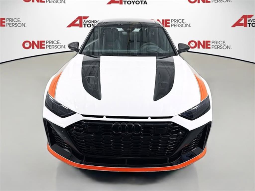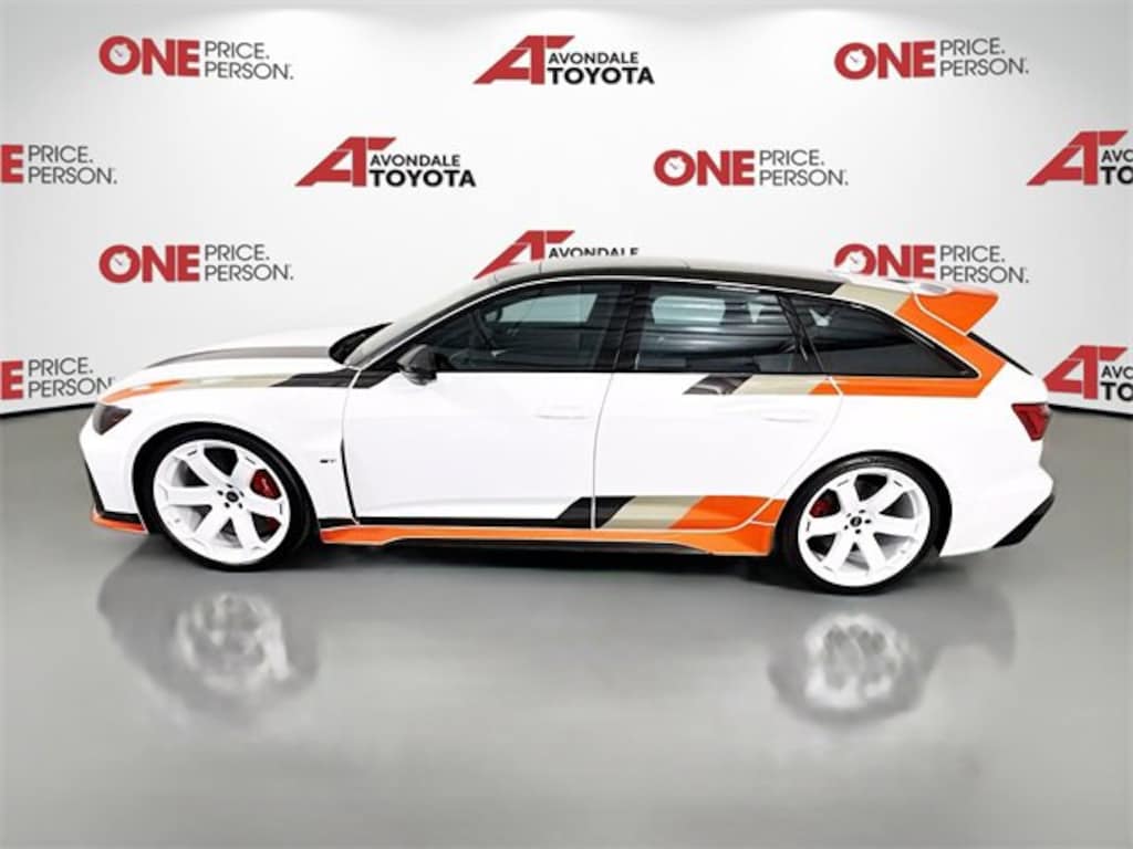 2025 Audi RS6 Avant Performance is #375 of 660 GT models produced and one of 85 examples allocated for the United States market. GTs were factory-equipped with redesigned bodywork, a revised Sport rear differential, adjustable coilovers, and Arkona White paint with a livery inspired by the IMSA GTO Audi 90 Quattro. The twin-turbocharged 4.0L mild-hybrid V8 is linked with an eight-speed automatic transaxle and Quattro all-wheel drive, and the wagon is further equipped with LED Matrix-Design headlights, ceramic-composite brakes, a Bang & Olufsen 3D sound system, adaptive cruise control, Ibis White-finished 22 six-spoke Avus wheels, heated and ventilated RS Sport front seats, and heated rear seats.