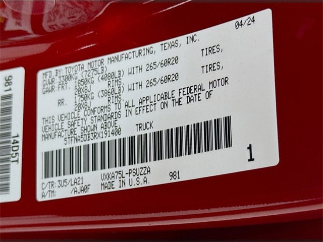 Supersonic Red 2024 Toyota Tundra Platinum 4WD 10-Speed Automatic 3.4L V6